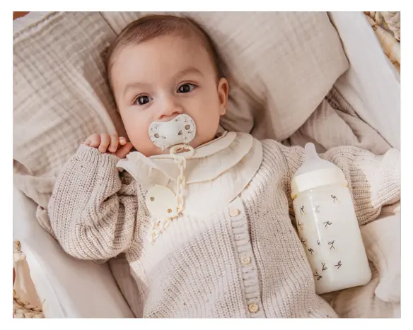 Butelka Birdies 270 ml ze smoczkiem fizjologicznym SX Pro o średnim przepływie, zaprojektowana z myślą o rozwoju jamy ustnej dziecka. Wskazana dla niemowląt od trzeciego miesiąca życia, smoczek pozwala na utrzymywanie języka w tej samej naturalnej pozycji, jak podczas karmienia piersią. Smoczek zatwierdzony przez Hiszpańskie Towarzystwo Stomatologii Dziecięcej.